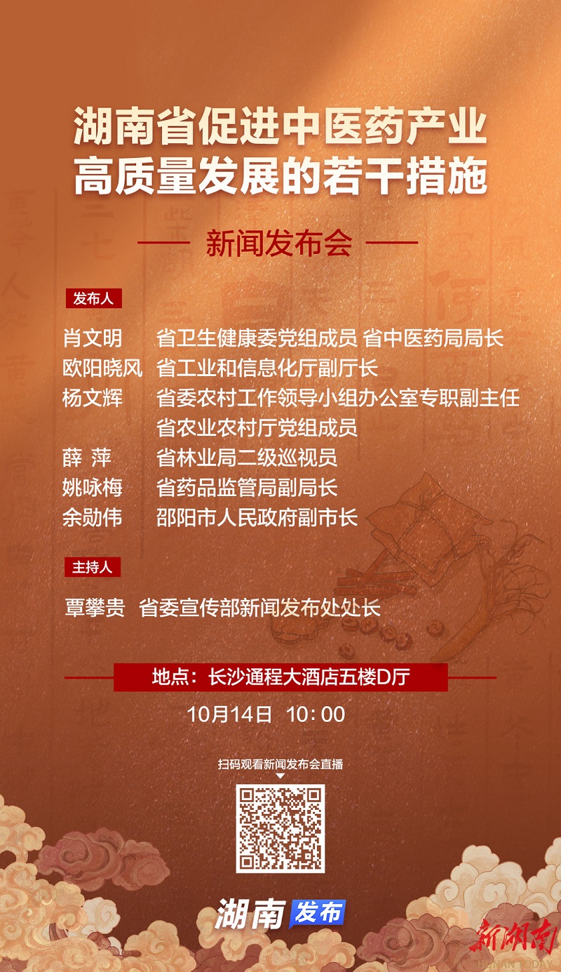 【新湖南】预告海报|《湖南省促进中医药产业高质量发展的若干措施》新闻发布会